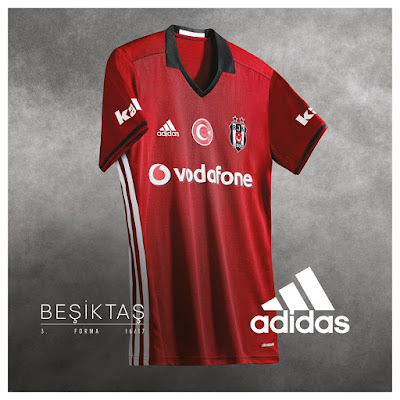 adidas, 2016-2017 Beşiktaş 3. Forması için, bir yıllık aradan sonra koyu kırmızı tonlarını kullanıyor. adidas’ın 2016-2017 futbol sezonu tasarımlarına ait en çok öne çıkan unsurlardan biri olan ikonik 3 bant ise yine formanın yanlarında, bu kez beyaz olarak yer alıyor. V yaka ve kollardaki siyah detaylar ile ense kısmındaki bayrak görünümlü siyah-beyaz şerit, formanın güçlü duruşunu tamamlıyorlar. Şık tasarım detayları ile en ileri adidas teknolojisini birleştiren bu forma, çok hafif, özel bir kumaş yapısına sahip.