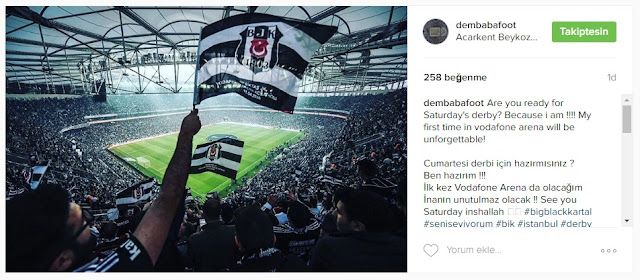 Beşiktaşlı taraftarların sevgilisi olan Demba Ba, sosyal medya hesabından Cumartesi günü oynanacak olan derbi ile ilgili paylaşım yaptı.
