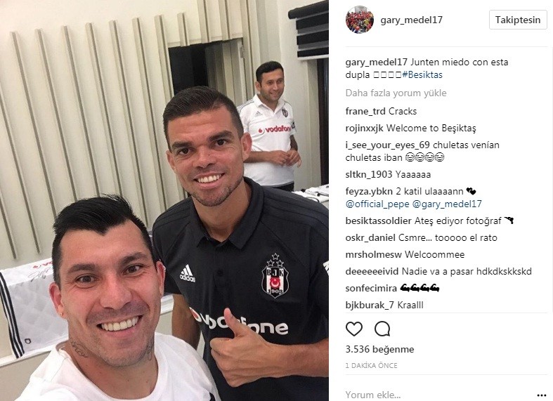 Antrenmanın ardından tesislerde yeniden Pepe ile bir araya gelen Medel bir fotoğraf çekip altına "bu ikiliden korkun" ibaresini de ekleyerek bunu sosyal medyadaki takipçileri ile paylaştı...
