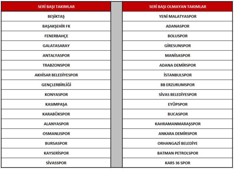 Türkiye Kupası 5.tur kura çekiminde torbalar şu şekilde;