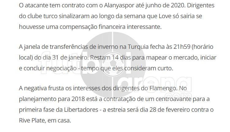 Globoesporte'nin haberine göre Flamengo yönetimi Alanyaspor'un istediği bonservisi karşılamanın imkansız olduğunu düşünürken bu transferi Beşiktaş'ın bitirdiği iddia edildi.