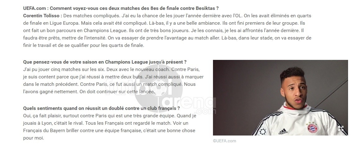 siyahlabeyaz | Şampiyonlar Ligi'nde hafta arası Beşiktaş ile karşılaşacak olan Bayern Münih'in yıldız futbolcusu Tolisso, bu zorlu müsabaka öncesinde UEFA'nın resmi internet sitesine açıklamalarda bulundu. Genç futbolcu takım arkadaşlarını Beşiktaş'a karşı uyardı.