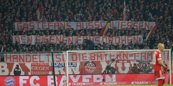 Açılan pankartta şu ifadeler yer alıyordu: “Demek misafir taraftarları yasaklıyor, kendi taraftarınızı tehdit ediyorsunuz! Bayern ailesine böyle davranmak yakışıyor mu?"