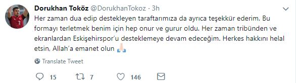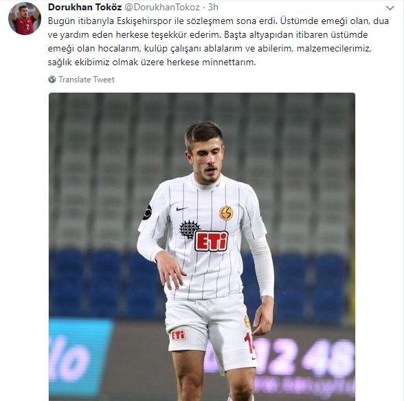 Geçtiğimiz sezonu Eskişehirspor'da tamamlayan ve transfer döneminde Beşiktaş'a gideceği iddia edilen Dorukhan Toköz, sosyal medya hesabından veda paylaşımı yaptı