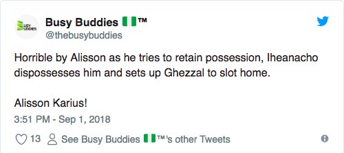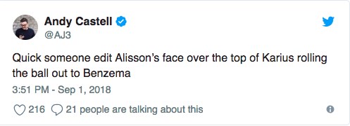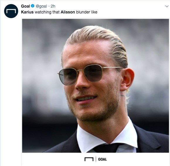 Sosyal medyada bazı Liverpool taraftarları Karius’u geri çağırırken bir Internet sitesi de geçen seneden bu yana ligde gole sebebiyet veren hatalarda Alisson’un (1), Karius’u (0) geride bıraktığına dikkat çekti. (Ajansspor)