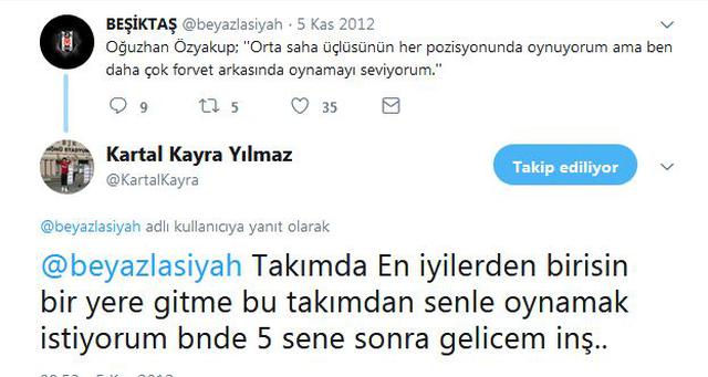 Orta sahada görev yapan Kartal'ın en büyük hayallerinden biri Oğuzhan Özyakup ile forma giymekti. 7 sene önce Kartal, Oğuzhan'a "Takımda en iyilerden birisin. Bir yere gitme bu takımdan. Seninle oynamak istiyorum. Bende 5 sene sonra gelicem inşallah" dediği bir mesajı ortaya çıktı.