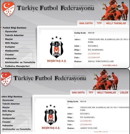 siyahlabeyaz | Beşiktaş'ta başkanlık krizi... Türkiye Futbol federasyonu'nun resmi internet sitesinde yer alan bilgilere göre, siyah beyazlı kulübün Başkanı Erdal Torunoğulları olarak gözüküyor.