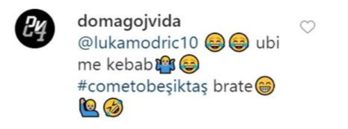 Vida ise Modric'in bu mesajına "Kebap yedim kardeşim, Beşiktaş'a gel" diye cevap verip, gülücük emojileri kullandı.